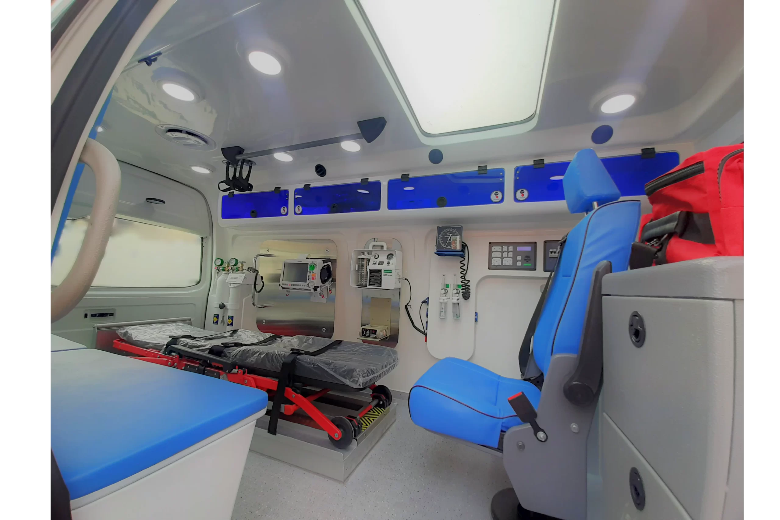 کابین عقب آمبولانس با استفاده از متریال مقاوم، بهداشتی و قابل شستوشو ساخته میشود که دارای ویژگیهای زیر است: