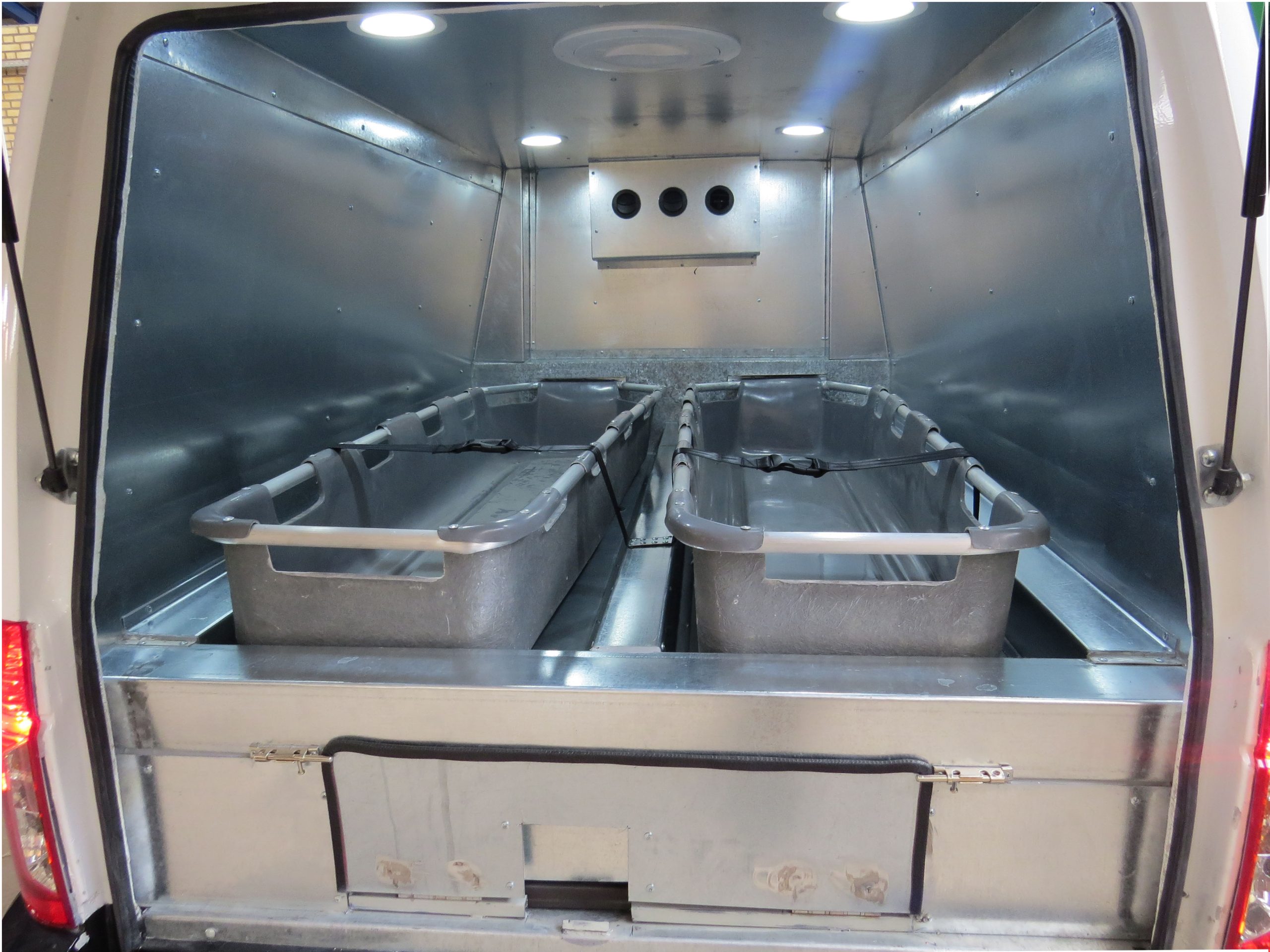 تجهیز خودرو فوتیبر (حمل متوفی) | ساخت استاندارد اتاق حمل جسد با امکانات کامل